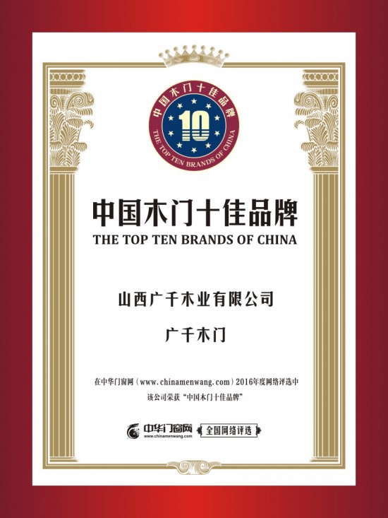 榮譽(yù)資質(zhì) 中國(guó)木門(mén)十佳品牌