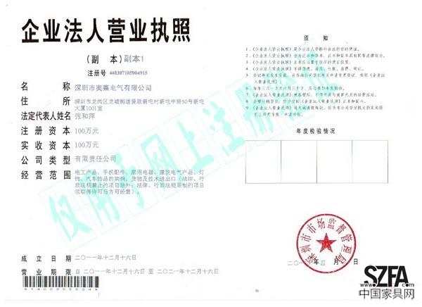 證書介紹 深圳市奧萊電氣有限公司 藝術(shù)開關(guān)的領(lǐng)航者!