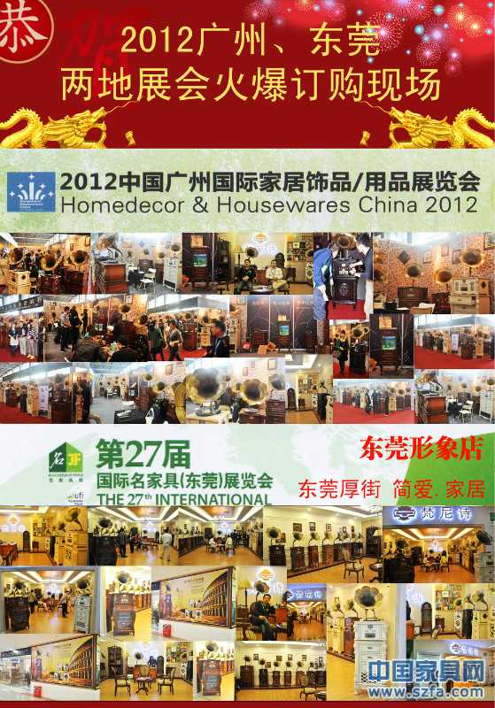 2012廣州春季家具展,梵尼詩發布4款高端配置復古留聲機,驚艷登場,高貴奢華,吸引眾多專業買家,現場簽約近200萬,感謝大家的支持與厚愛,也感謝公司各部門的通力協助。 2012,梵尼詩品牌年,百城百店計劃,順利啟幕。梵尼詩東莞厚街簡愛家居專門形象店也在東莞展開展前,裝修一新,向全國經銷商展示梵尼詩2012新品和工廠實力!現場簽約荊門,昆明,包頭,大同,營口,呼市等多家專賣店,反響熱烈! |