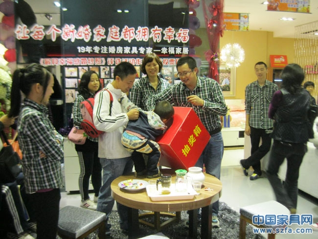 婚慶主題家具體驗店地址:康王北路負二層紅樹灣家具博覽中心幸福家居 婚慶主題家具體驗店熱線:020-62311155 幸福家居服務之星與幸福客戶合照 等候抽獎結果 幸福夫婦來“幸福感”合照一張 主持人宣傳抽獎事項 幸福的小家人正在抽獎 幸福家居官網:www.hafu.cn 幸福人服務熱線:400-8860-350 |