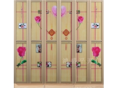 衣柜門框架為鋁合金框架,框架內正面為玻璃內有花色,背面為4MM高密度板貼三聚氰胺板,每扇門子有四個鉸鏈孔.
