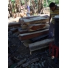散孔材。生長輪明顯。心材新切面暗紅褐、桔紅褐至深紅褐,常帶黑色條紋。管孔在肉眼下可見至明顯,弦向直徑最大351μm,平均139μm;數甚少至略少,1~12個/mm2。軸向薄壁組織在放大鏡下明顯,主為離管型,星散聚合、細線狀(多數寬1~數細胞,與木射線相交,局部網狀可見)及聚翼狀、環管束狀。木纖維壁厚。木射線在放大鏡下明顯(新切面上桔紅色);波痕不明顯;射線組織同形單列。新切面氣味辛辣;結構細;紋理直或交錯;氣干密度O.98~1.22 g/cm3。