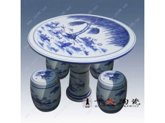 青花手繪山水陶瓷桌凳,酒店休息區桌凳批發