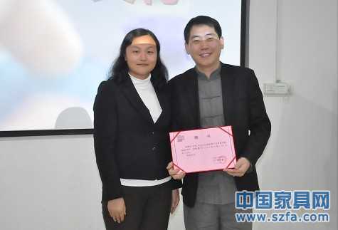 中國家具產業教育學院客座講師的授牌儀式上,中國家具產業教育學院策劃總監董媛媛小姐與符凱老師合照