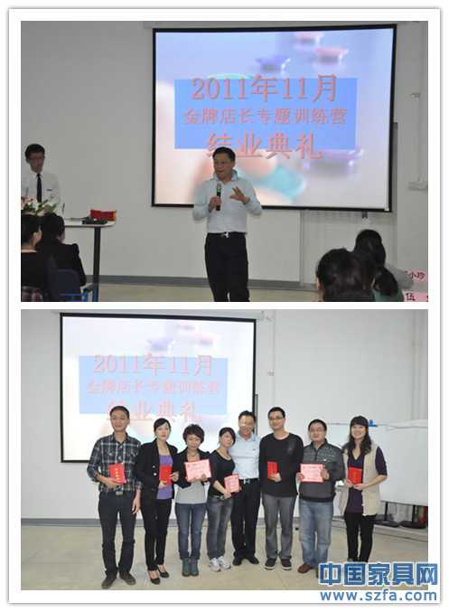 17日晚上的店長(zhǎng)班的結(jié)業(yè)典禮神秘嘉賓現(xiàn)身,深圳市家具行業(yè)協(xié)會(huì)侯克鵬秘書長(zhǎng)親臨現(xiàn)場(chǎng),為優(yōu)秀團(tuán)隊(duì)頒獎(jiǎng)以及為學(xué)員頒發(fā)了結(jié)業(yè)證書,結(jié)業(yè)典禮之后侯秘書長(zhǎng)更與學(xué)員們一起聯(lián)歡。