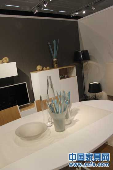 其次是陳設,主要從色彩和元素布局兩方面來體現,歐洲展再用色方面以黑白灰等調和色為主,其他濃墨重彩的顏色更多只作為小點綴,起到點睛之用,整個給人的感覺就是素雅干凈。另外布局陳設也講究元素呼應,力求整中有分,分中有整,即使大的展館看起來會有些亂,但總有一個貫穿整體的元素在中間遙相呼應,分隔空間的同時也提示整體的存在。另外這種偏于自然的陳設也給人一種親和力,不像國內展商的陳設總給人一副豪華整潔,高高在上的距離感。