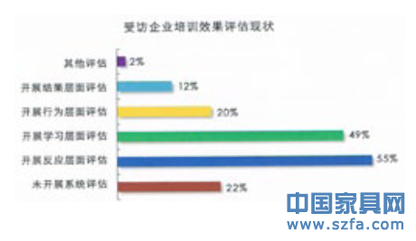 評估基本都是采用“柯氏四級評估”方式進行,但只有12%的企業開展結果層面的評估,還有22%的企業未開展系統的培訓效果評估。