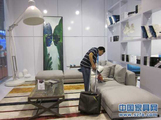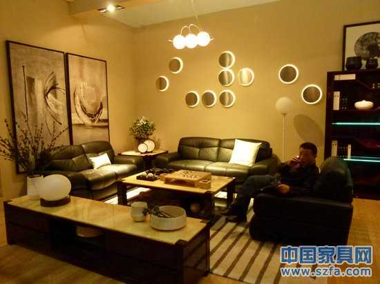 在這方面做得比較好的是以深圳展左右為代表的中國風展廳。沙發本身是個舶來品,左右竟然能連續做好幾年的中國主義,不得不佩服。今年左右深圳展廳的內部隔斷,是左右往年展廳外墻的深化,去年展廳風格以青花瓷為代表,演繹中國風,今年顏色更加豐富,中國風的概念也更加多元化。相比之下,廣州展的很多高端沙發品牌,因為一直做國際化路子,所以在展會軟硬裝的表現力上疲軟,無法突破。