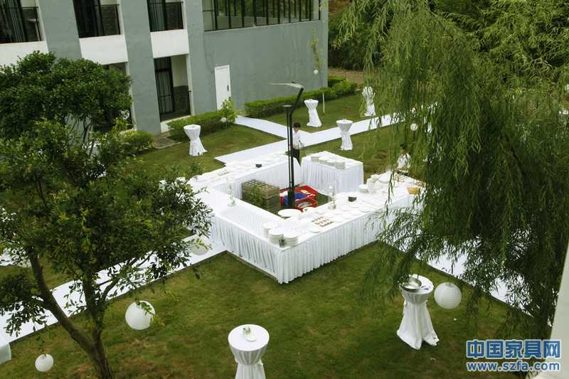 本次宴會主題是“白色”,中國家具產業教育學院一直以“森林中的學院,學院中的森林”據稱,環觀白色宴會的現場,滿眼課件青翠的夏綠,純凈的白與大自然清新的翠綠融為一體,伴隨輕松的音樂,一場純正的西式宴會悠揚地唱響一場南康家具精英的聚會。