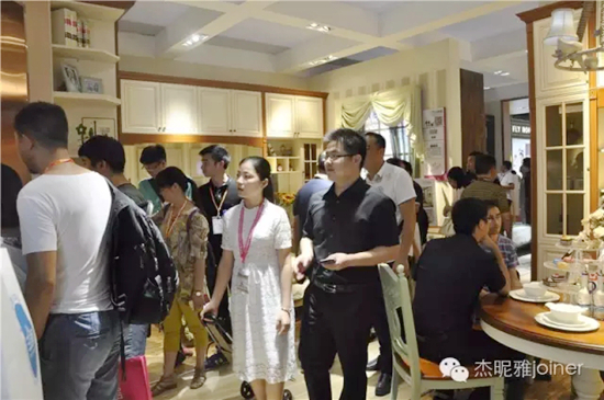 開幕首日,眾多經銷商慕名而來。許多經銷商在參觀簡歐家具“杰昵雅”展位時表達了強烈的合作意向, “過去的全屋定制,要么以柜體為主,空間美感不足,要么以成品家具為主,空間利用率難以滿足需求,但是在這里我們找到了未來定制家居的解決方向。”