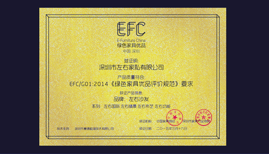 2014年,當深圳市家具行業協會主導下的中國家具環保檢測最高標準——“中國綠色家具優品”工作的啟動,對于專注沙發制造與幸福文化的左右沙發而言,這無疑是一次企業升級的機遇。