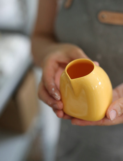Mummo ,芬蘭語中奶奶的意思。Mummo小奶壺,是旻佳經過反復的比例推敲和細節琢磨,根據手里握著奶壺最舒服的形態而制作的。她好像是奶奶的化身,在忙碌的深夜,在初醒的清晨,靜靜地為你遞上一杯熱牛奶,讓你感受到親人最近的牽掛和愛。