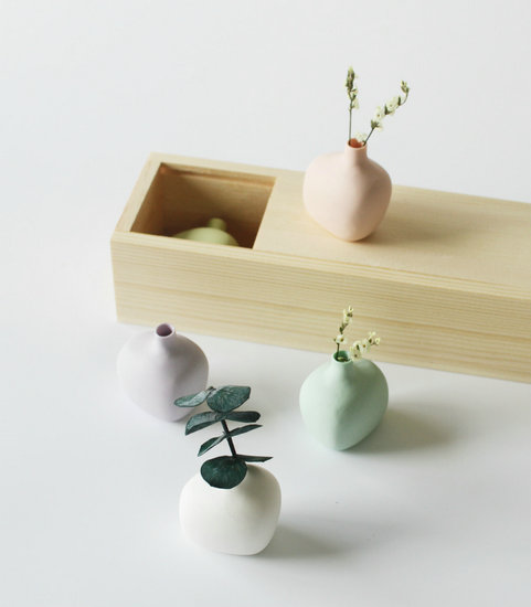 “babyvase”小花瓶,小巧可愛。在色彩和質感上都非常細膩溫柔,如同嬰兒肌膚般光滑。在花瓶中插上小花小草,擺在案頭,萌發出小小的生機