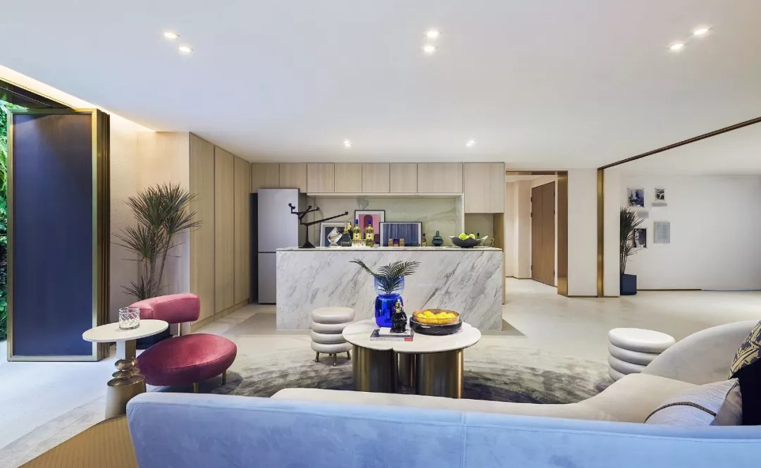 “這個高定空間的設計,我們要面對的客戶是絕對的菁英階層,他們欣賞自我,品位非凡。” 不拘囿于風格,以強烈又鮮明的現代手法雕琢空間,用時尚優雅的色彩點染空間,借助富有層次感的藝術陳設,詮釋出獨特的現代簡約之美。