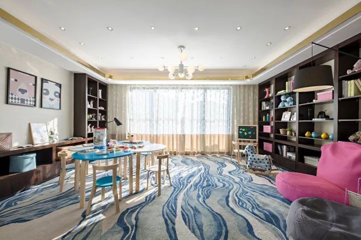 除卻兒童獨(dú)立的休息空間,別墅還特別設(shè)置了一個(gè)兒童游戲室??蓯鄣耐婢摺椢镫S處可見,陽(yáng)光透過大大的落地窗,照耀著童年的時(shí)光腳印,留駐一段純真。