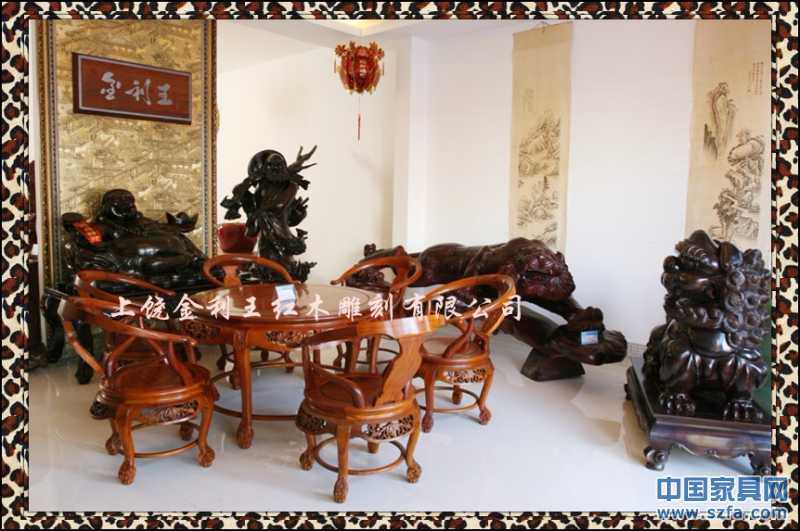 上饒市金利王紅木雕刻有限公司,座落于江西省上饒市經濟開發區鳳凰園區,是一家專門從事中高檔紅木家具生產的專業廠家。本公司視質量與信譽為企業生存和發展的根本,潛心為客戶的利益而開發創新各種款式別致的優質產品。本公司產品選材于東南亞進口的黃花梨、紫檀、酸枝、緬甸花梨等珍貴紅木,其特點色澤深沉、質地精密、紋理細膩。公司擁有精湛的技術,產品手工制作,名師打理,設計精美,制作精巧,榫卯牢固,舒適耐用。既傳承傳統的雕刻技術,研發古典藝術家具,又融入了新的潮流構思,其人、物、花、鳥栩栩如生,龍、鳳、獅、虎神采飛揚,富含東方神韻,各類產品深受廣大消費者和藝術愛好者的親睞。
