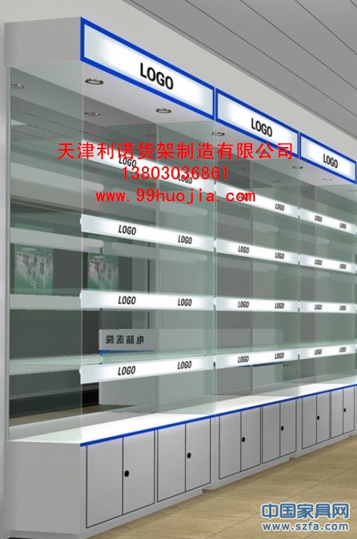 主要是由環保型木板材料,用特制的防火板加上各種裝飾材料及玻璃罩拼制而成。對一些較貴重的首飾、制衣、精密儀器、手機以及各種計算機類商品的所用貨架。沒有固定標準,可根據商品需求及地面 位置,可做標準形狀或異型展柜。