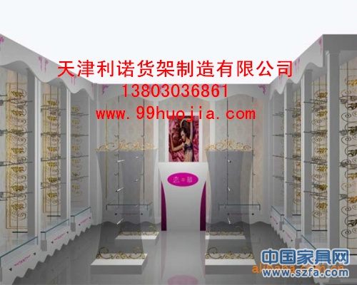 木制柜臺貨架:主要是由環保型木板材料,用特制的防火板加上各種裝飾材料及玻璃罩拼制而成。對一些較貴重的首飾、制衣、精密儀器、手機以及各種計算機類商品的所用貨架。沒有固定標準,可根據商品需求及地面 位置,可做標準形狀或異型展柜。