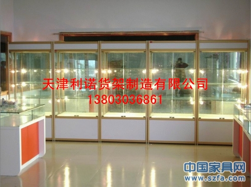 由鈦合金型材,連接鎖,玻璃托,射燈,玻璃層板和鏡子,鋁塑板或三聚纖氨板組成,型材顏色有金黃色,黑色,白色,柜子和LOGO顏色由用戶選定,精品貨架外觀精美,結實耐用,主要用來展示比較輕和比較貴重的東西,如:工藝品,化裝品,電子元件等之類其他產品,精品貨架尺寸可以根據用戶要求來訂做!