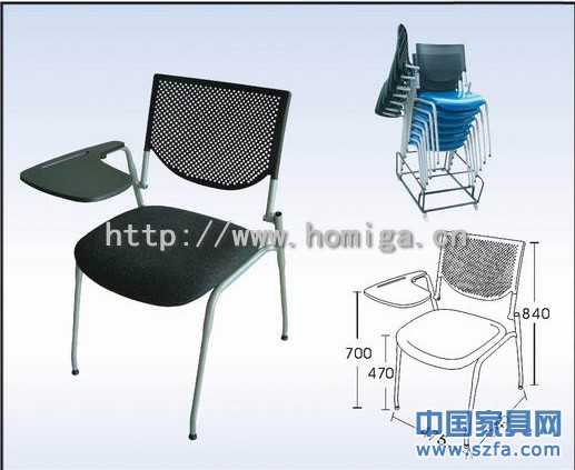 培訓椅(公司培訓椅,辦公培訓椅,培訓專用椅)產品材料及說明:座板、靠背及寫字板均采用高純度原生PP(聚丙烯)工程塑膠料,經低溫一次性模具注塑成型,座板、背板及寫字板膠板有黑色、深藍、淺灰三種顏色可選,,優質低碳A3冷扎鋼管表面酸洗、磷化及高溫靜電噴涂腳架,產品座面與靠背可視需要增加飾布軟墊,布料顏色可選!可選擇配置吊籃(書藍/書網/書框);
