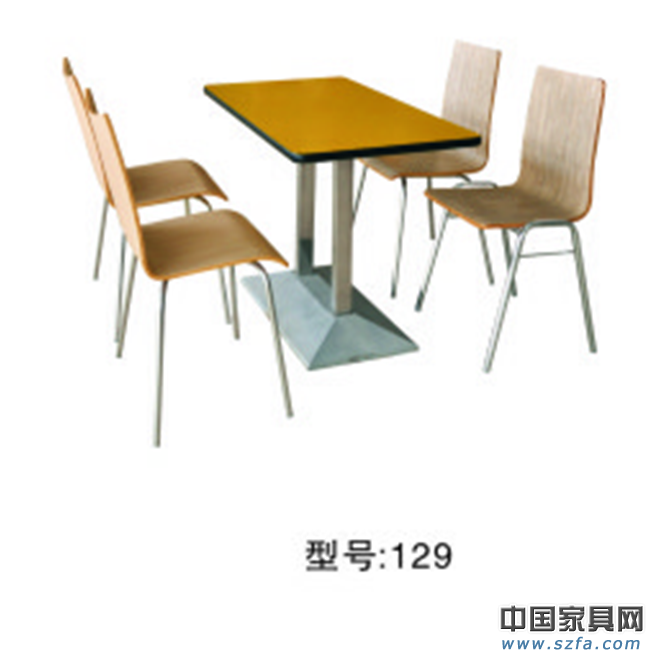 4人位配三聚氰胺桌面,架子是鐵定的方管架,鑄鐵鐵盤。這種曲木椅不像一般的噴漆的曲木椅,這種椅面耐刮,不易刮花,一般的椅面用鑰匙之類的硬物就可以刮花。