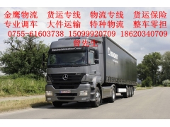 ===深圳金鷹物流公司成立2003年3月,======公司備有4.2米車至17.5各種車輛 高低板、大噸位半掛等各種噸位車型車輛。大件,小件,整車,零擔。公司服務宗旨:真誠對待每一位客戶主要有普通貨物整車運輸、零擔貨物運輸、封關貨物運輸、特種車輛貨物運輸(長途搬家,大件運輸,轎車托運) ●超便捷:上門收貨、送貨上門、車站自提,任由客戶選擇,方便快捷