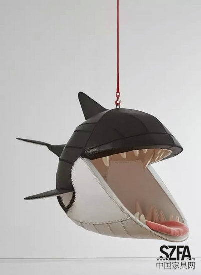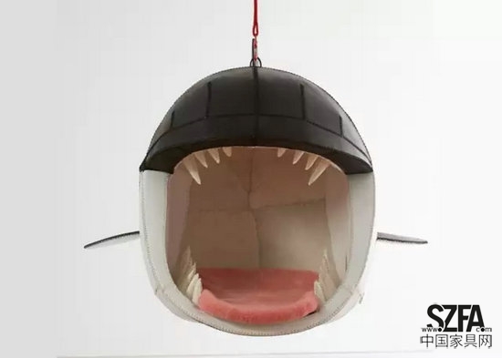 這位設(shè)計(jì)師設(shè)計(jì)了很多款動(dòng)物頭主題的椅子,他保留了動(dòng)物夸張的大頭和縮小的身體,僅僅用一根掛鉤吊在半空中,有點(diǎn)滑稽,但絕對(duì)有趣。因?yàn)檫^(guò)于夸張的大嘴,有的時(shí)候不能一眼看出它究竟是什么動(dòng)物,但留有童心的人一定會(huì)去坐一會(huì)兒。