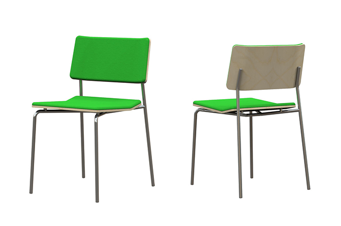 與芬蘭本地企業(yè)合作的座椅設(shè)計ILOA,材質(zhì)選用三合板,并在此基礎(chǔ)上進行延伸設(shè)計,用顏色和結(jié)構(gòu)的轉(zhuǎn)變來適應(yīng)不同環(huán)境和客戶的需求,用簡單的線條勾勒出極致的美感。