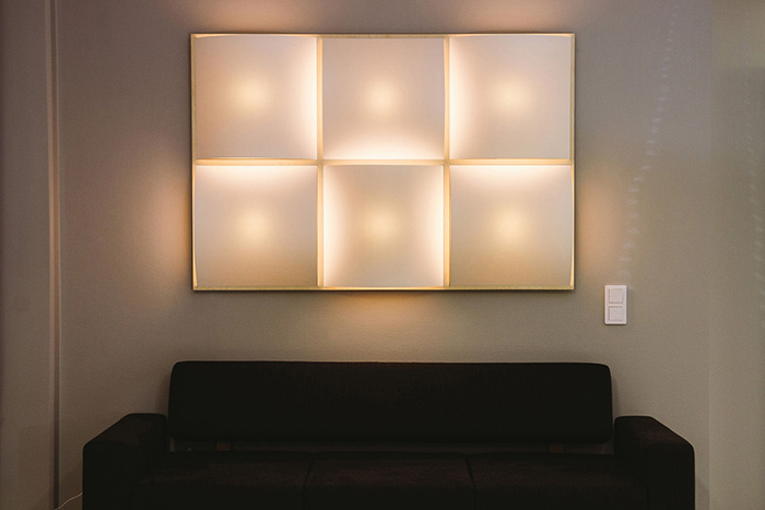 Jonas Hakaniemi對原材料的選用極為講究,與Uhtua Design合作設(shè)計的一款桌椅——Kelo Furniture,利用芬蘭盛產(chǎn)的松木為基礎(chǔ),原生態(tài)的感覺迎面撲來。Wall panel看似簡單的裝飾藝術(shù)品,實則內(nèi)藏玄機,三合板的環(huán)保材料結(jié)合LED燈的組合,立體化呈現(xiàn)了別具風味的燈飾設(shè)計。